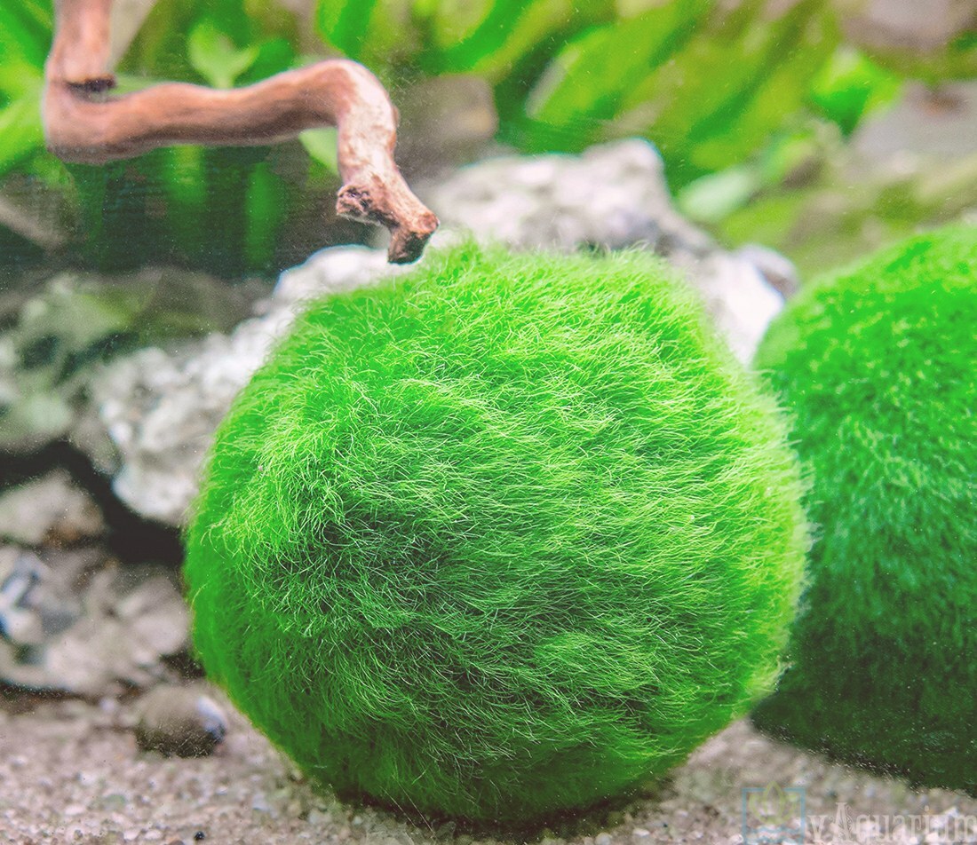 Вообще водоросли в аквариумистике не приветствуются. Но есть такое круглое и приятное исключение – кладофора. Этот шарик из тонких зеленых нитей способен выделять кислород и чистить аквариум. Смотрится очень красиво и аккуратно, если за ним правильно ухаживать и периодически промывать под теплой водой. Кладофоре нужен световой режим и для того, чтобы водоросль не плавала у поверхности – нужно, чтобы она оставалась по большей части в тени.